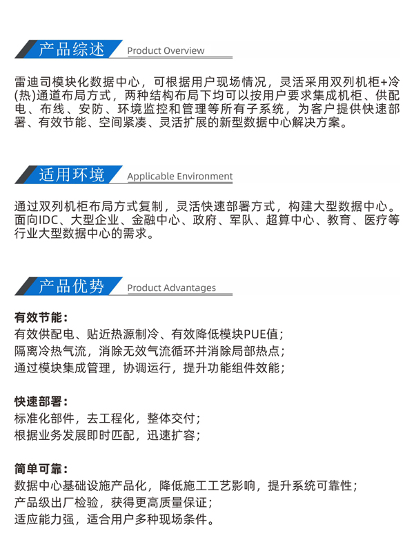 雷迪司雙排微模塊機(jī)房雙列機(jī)柜數(shù)據(jù)中心解決方案